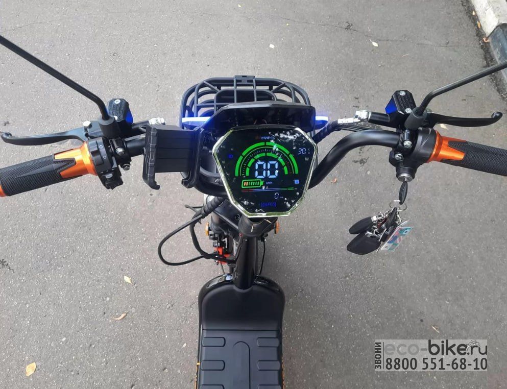 - Энергоемкий аккумулятор: LiFePO4 батарея с параметрами 60V30Ah предоставляет запас хода до 55 км на одном заряде.